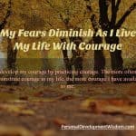 I develop my courage by practicing courage. The more often I demonstrate courage in my life, the more courage I have available to me. I work to build my courage muscles each day by facing my fears.When I am faced with a situation that causes anxiety, I make it a point to deal directly with that situation. I avoid running away or working around that situation.As I face … [Read more...] about My Fears Diminish As I Live My Life With Courage