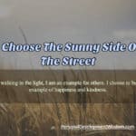 With all the turmoil out in the world today, I choose the path of least resistance. I choose to have a positive attitude.I am practicing being positive. I choose my thoughts carefully. I choose my words mindfully. Being positive is my state of mind.I fill my world with positivity. I see the good in all things. I see the good in all people. I choose to see the good out … [Read more...] about I Choose The Sunny Side Of The Street