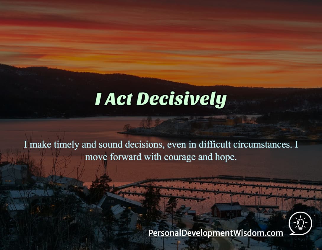 Today, I make timely and sound decisions, even in difficult circumstances. I move forward with courage and hope.