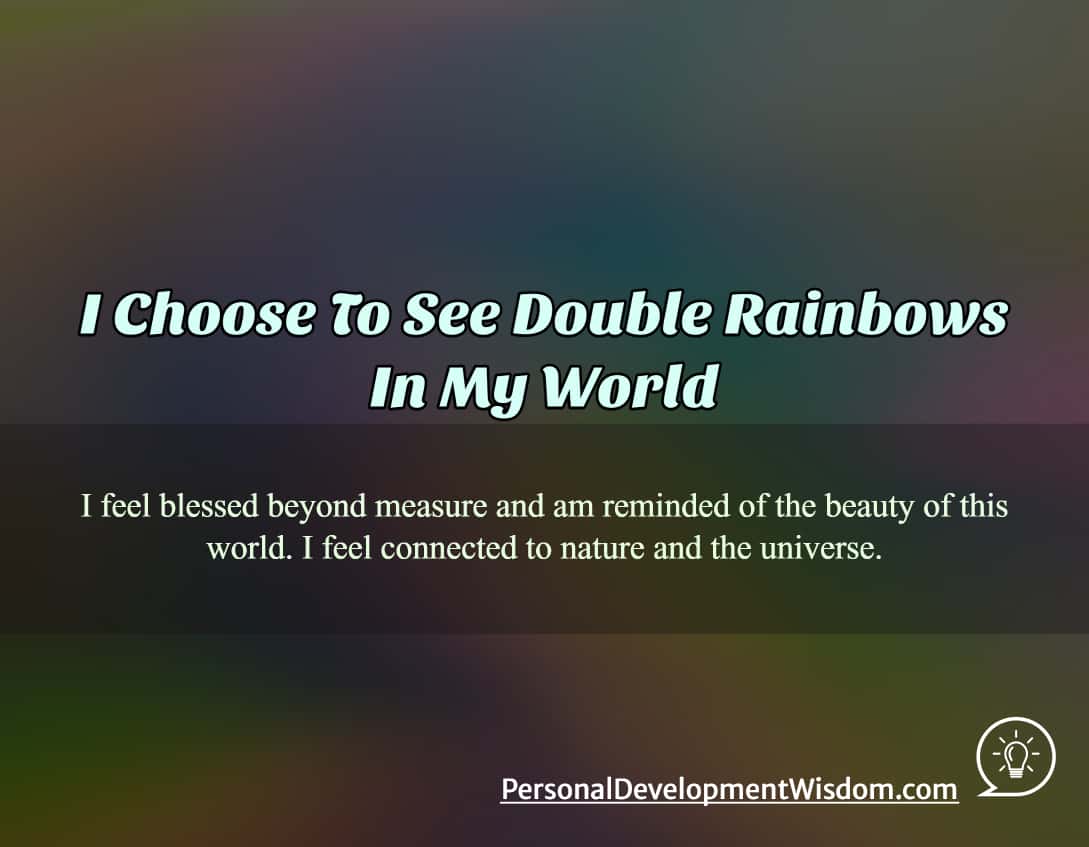 Today, I feel blessed beyond measure and am reminded of the beauty of this world. I feel connected to nature and the universe. I am grateful for the beauty and healing of rainbows as I create my world.