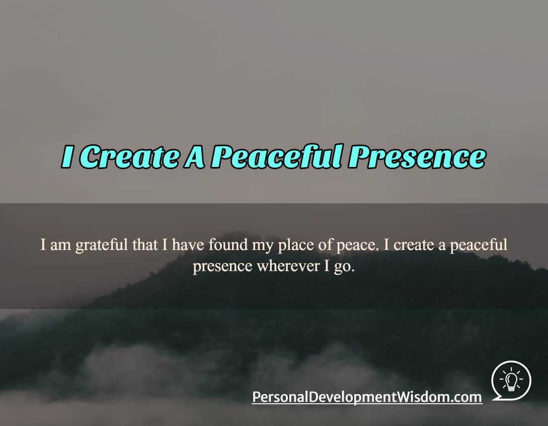 Today, I am grateful that I have found my place of peace. I create a peaceful presence wherever I go.