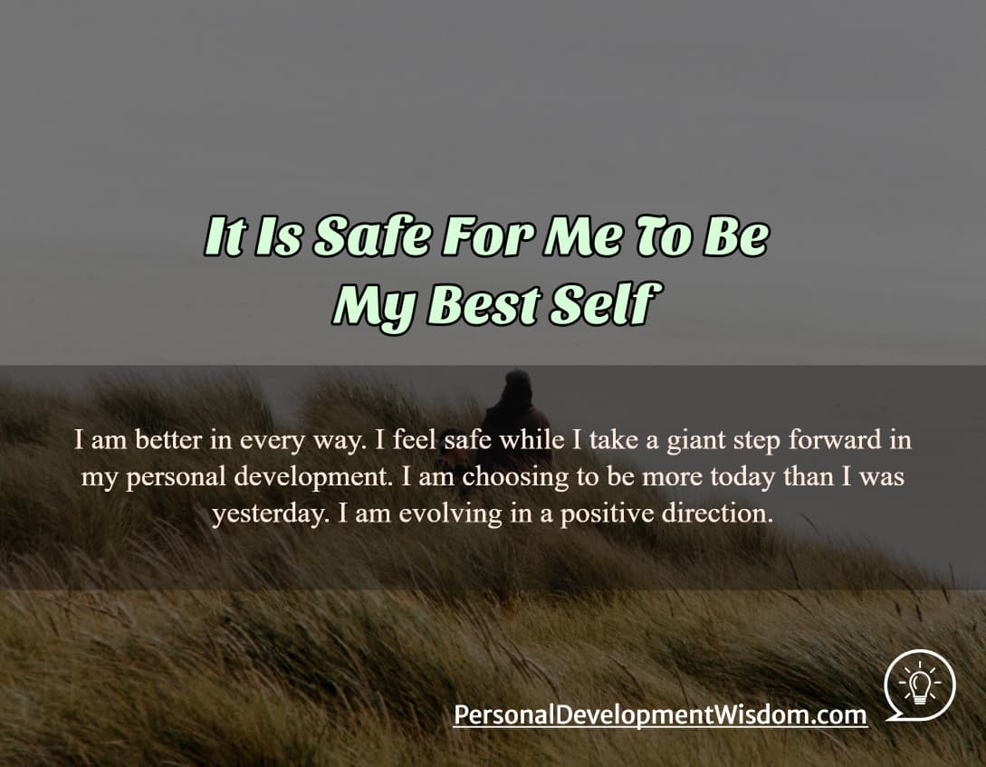 Today, I am better in every way. I feel safe while I take a giant step forward in my personal development. I am choosing to be more today than I was yesterday. I am evolving in a positive direction.