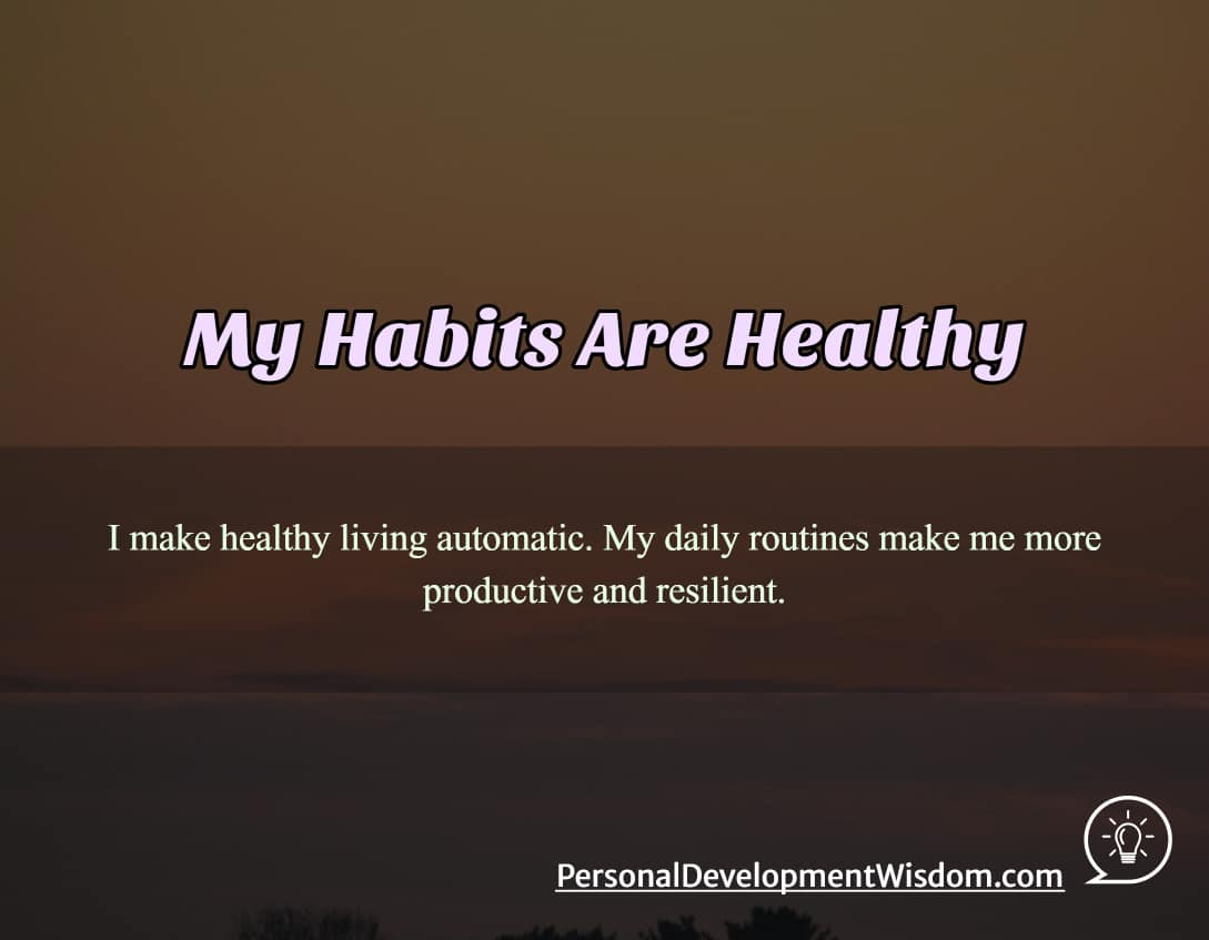 Today, I make healthy living automatic. My daily routines make me more productive and resilient. I increase my chances for living a long and active life.