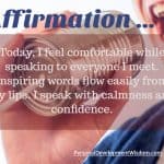 I speak with confidence and calmness. I speak easily, with confidence and poise. I patiently wait for my turn to speak, but when I speak, I speak with a high level of confidence. Each word that leaves my mouth boosts my confidence further. Every breath I take results in a greater feeling of calmness.I remain calm during all social situations. Regardless of the … [Read more...] about Communication Affirmation – Speak With Confidence