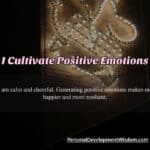 I take charge of my feelings. My happiness comes from within.My life has purpose. I set meaningful goals and strive to reach them. I align my actions with my values. I devote my time to challenging and rewarding activities.I take care of my health and wellbeing. I eat a balanced diet and work out regularly. I sleep well and manage stress.I connect with family and … [Read more...] about I Cultivate Positive Emotions