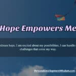 My dreams give me energy and strength.Hope encourages me to make constructive choices. I value myself and my potential. I want to eat healthy foods and exercise regularly. I see the importance in doing meaningful work and managing stress.Hope helps me persevere through obstacles. I know that hardships are temporary. I can see the light at the end of the tunnel even … [Read more...] about Hope Empowers Me