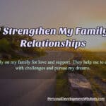 My loved ones are a cornerstone of my life.I make family time a top priority. We enjoy family dinners and weekend outings. We visit our local library and neighborhood parks. We spend evenings talking and playing board games.I show my appreciation and gratitude. I thank my children for helping out around the house and making me crafts at school. I tell my partner how … [Read more...] about I Strengthen My Family Relationships
