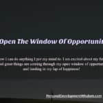 I let the light of new beginnings flow into my space. I fling the curtains of doubt open and receive new inspiration!I actively avoid closing myself off from opportunity. I open up my heart. I breathe in the new beginnings!I release old patterns of self-sabotage. I gratefully say goodbye to all the limiting beliefs from my past. I dust off the doubt dirt from my shoes … [Read more...] about I Open The Window Of Opportunity