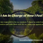 I alone decide how I feel. I have the option of experiencing any emotion I choose. I can choose to feel happy or sad, excited or bored, hopeful or hopeless. My feelings are under my control.Other people lack the power to affect my emotions. I can choose how I wish to respond to whatever they say or do. I remember that I am the one who is in charge.When I feel down, I … [Read more...] about I Am In Charge of How I Feel